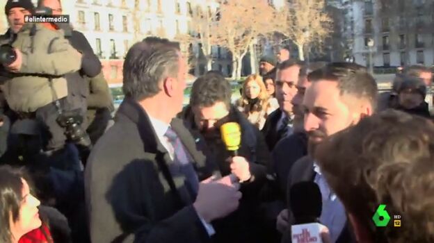 "¿De verdad cree que esta gente merece una pena tres veces superior a la de asesinato?", le ha preguntado el colaborador de El Intermedio a Santiago Abascal, cuyo partido pide una pena de 74 años de cárcel para los políticos independentistas presos. Sin embargo, este ha optado por no contestar.