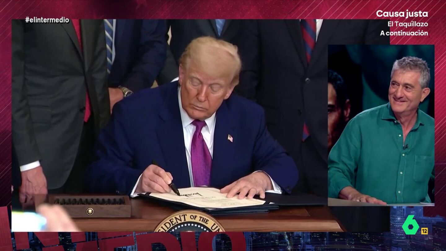 Guillermo Fesser ha analizado en El Intermedio la cumbre de la OTAN. La cumbre en la que Trump ha puesto sobre la mesa sus exigencias en defensa con el resto de países plegándose ante el presidente de EEUU. Todos, eso sí, menos Pedro Sánchez, que dijo 'no' a aumentar al 5% el gasto ante las amenazas del neoyorquino a España.
