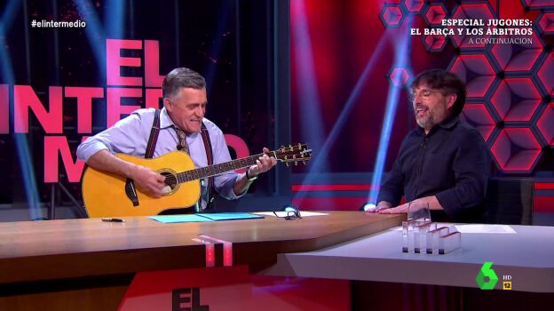 Con guitarra y voz en directo: la actuación improvisada de Wyoming y Évole en El Intermedio
