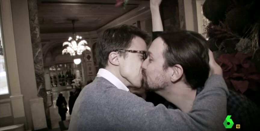 Íñigo Errejón y Pablo Iglesias: el beso que 'forzó' Thais Villas y que no volverá a repetirse
