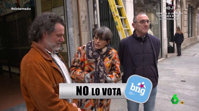 El primer desafío es encontrar a una persona que vote al PP, algo que Pablo apunta "en Ourense es muy fácil". El elegido es José que, aunque afirma que su voto "es una cosa que no se puede decir", termina revelándoselo al oído a Thais Villas. El segundo perfil es alguien que no vote al BNG, para lo que escoge a un hombre porque, explica, "tiene una pinta desaliñada, un punto de cierta intelectualidad".