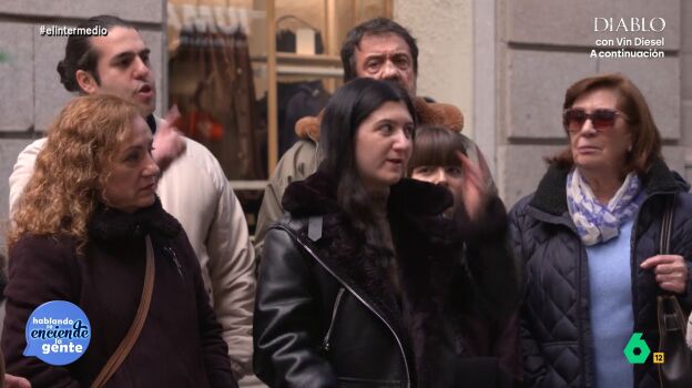 Villas plantea, entonces, qué pasaría si la propuesta fuera de Santiago Abascal, líder de Vox. "Opinaría lo mismo", expone una joven, en contra. "Hay que prohibirlo", afirma un hombre, "y hay que prevenir y hay que salvar a nuestra juventud del socialismo y el comunismo".