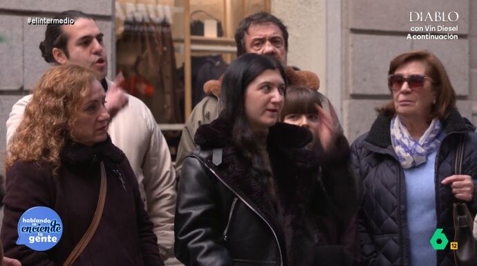 "Me está poniendo negra este chico", le dice una mujer, "que si el comunismo, el socialismo... ¿qué tendrá que ver?". La mujer expone que en las redes no se fomenta ni el socialismo ni el comunismo. "Siempre están en contra de Pedro Sánchez, todo lo que hace mal es Pedro Sánchez".