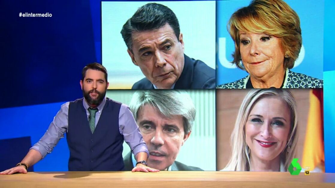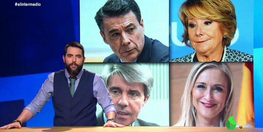 "El anterior, Ignacio González, ha pasado un año y medio en prisión provisional y está acusado de saquear las instituciones en beneficio propio.Pero antes estuvo Esperanza Aguirre, que llegó al poder en medio de un turbio caso de transfuguismo y salió del cargo entre sospechas de corrupción que afectaban a su entorno y a las ranas", añade el colaborador de El Intermedio.