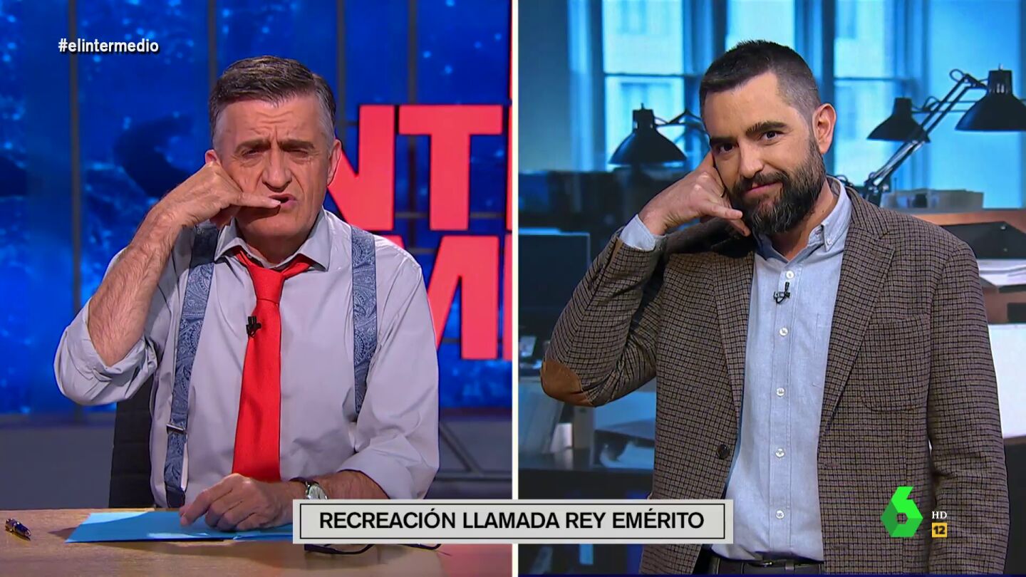 Dani Mateo y El Gran Wyoming recrean en este vídeo de El Intermedio cómo habría sido una de las llamadas de rey emérito a un empresario español para pedirle dinero y regularizar así su situación fiscal.