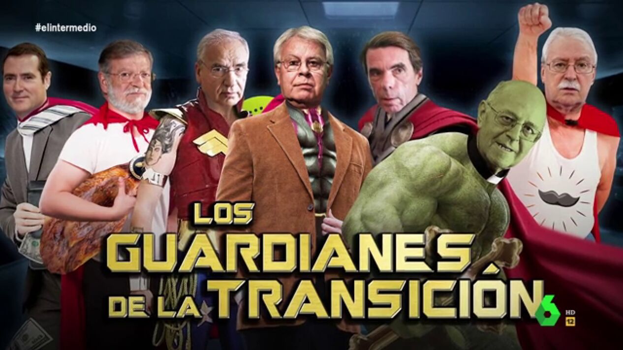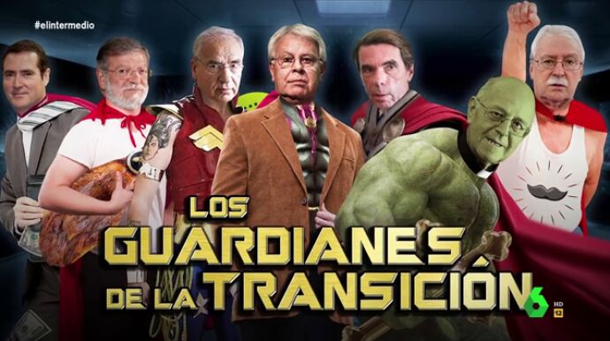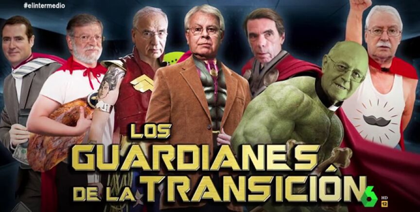 Ahora, "la estabilidad de España depende de una vieja guardia de superhéroes": los 'Guardianes de la Transición'. "Luchan contra los bolcheviques y los comunistas, y las subidas de tensión, porque alguno ya tiene una edad", ha anunciado el presentador.