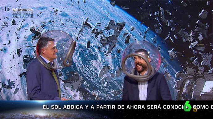 Además, los presentadores han analizado la última creación espacial: los 'barrenderos' que podrían limpiar las órbitas terrestres. "¡Fantástica noticia, Daniel Galileo! Esperemos que esta tecnología sea más avanzada que la nuestra porque sino los habitantes de la galaxia se despertarán a las 2:00 con el ruido del camión de la basura espacial", ha bromeado El Gran Wyoming.