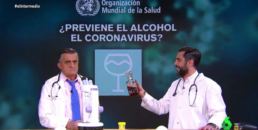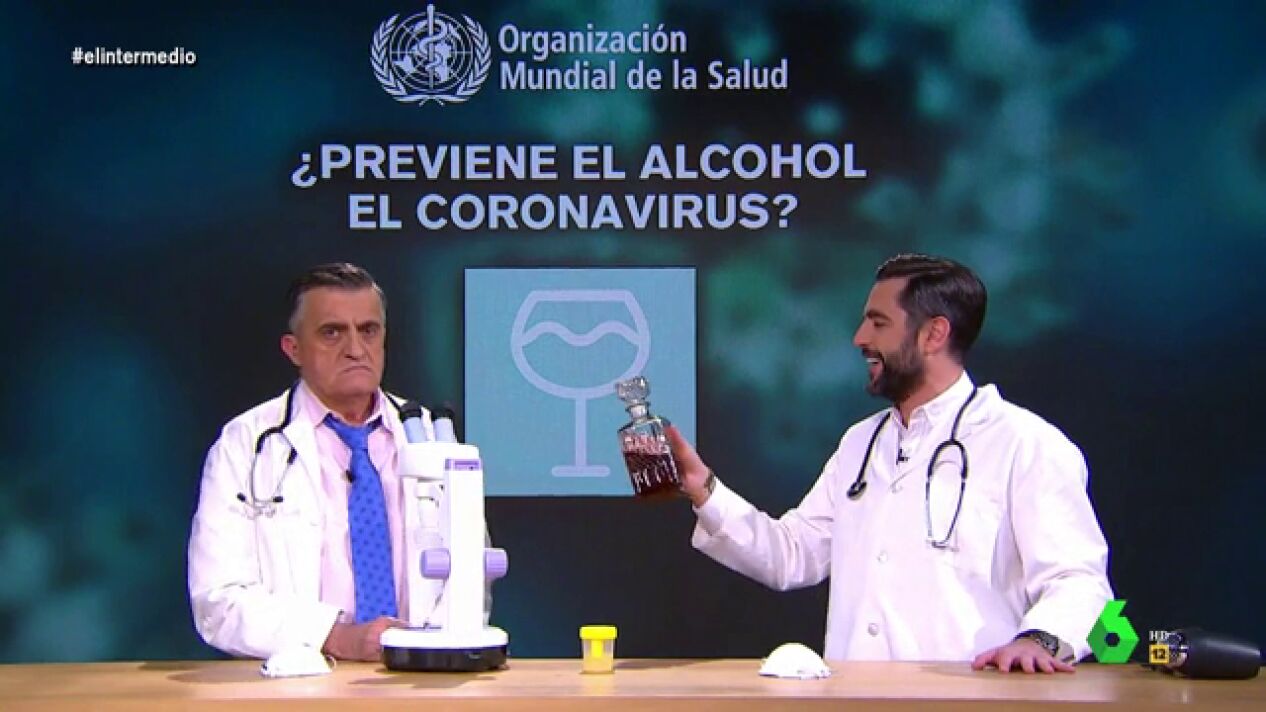 Dani Mateo explica en El Intermedio los principales bulos sobre cómo prevenir el coronavirus que ha desmentido la OMS y los somete al 'método científico' con ayuda del 'doctor' Wyoming.