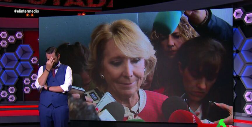 Dani Mateo repasa en El Intermedio a través de 'La Esperoteca' las mejores frases de Esperanza Aguirre sobre corrupción: "Sé que en casa estáis pensando cómo ha podido ocurrir que Esperanza Aguirrehaya sido imputada por la financiación ilegal del PP de Madrid".