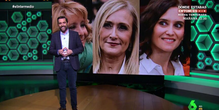 El Intermedio se ha detenido en la figura de Ayuso y, recurriendo a la Hemeroteca, ha mostrado el vídeo de la presidenta de la Comunidad de Madrid dando sus primeros pinitos en televisión.