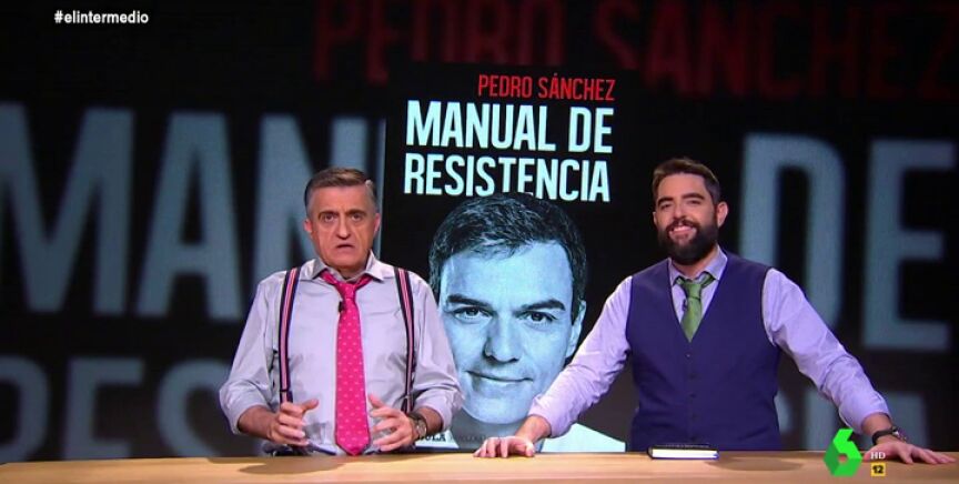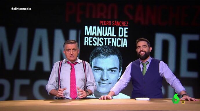 Dani Mateo interviene en El Intermedio para hablar de su libro, en concreto de su nuevo libro favorito: 'Manual de Resistencia', de Pedro Sánchez. Junto con El Gran Wyoming abrirán el corazón de Sánchez y analizarán la publicación.