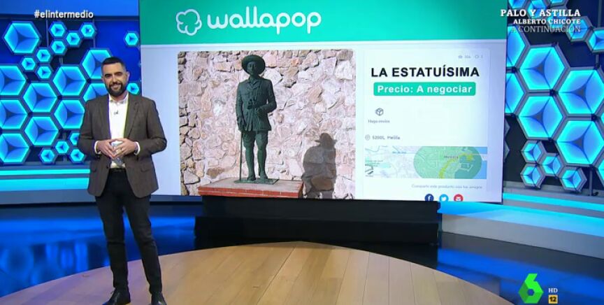 Tras la retirada de la última estatua de Francisco Franco en pie, Dani Mateo da ideas al Gobierno de Melilla para poder venderla en Wallapop: "Cabe en cualquier sitio, mide solo 1,5 metros. El monumento tiene solo 43 años, pero está prácticamente nuevo. Solo tiene un defecto, le falta un huevo".