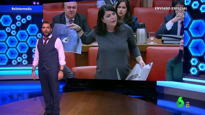 Dani Mateo muestra en este vídeo de El Intermedio el momento en el que Macarena Olona ha tenido que ser sacada de la Diputación Permanente por la ujier tras recibir tres advertencias de Meritxell Batet.