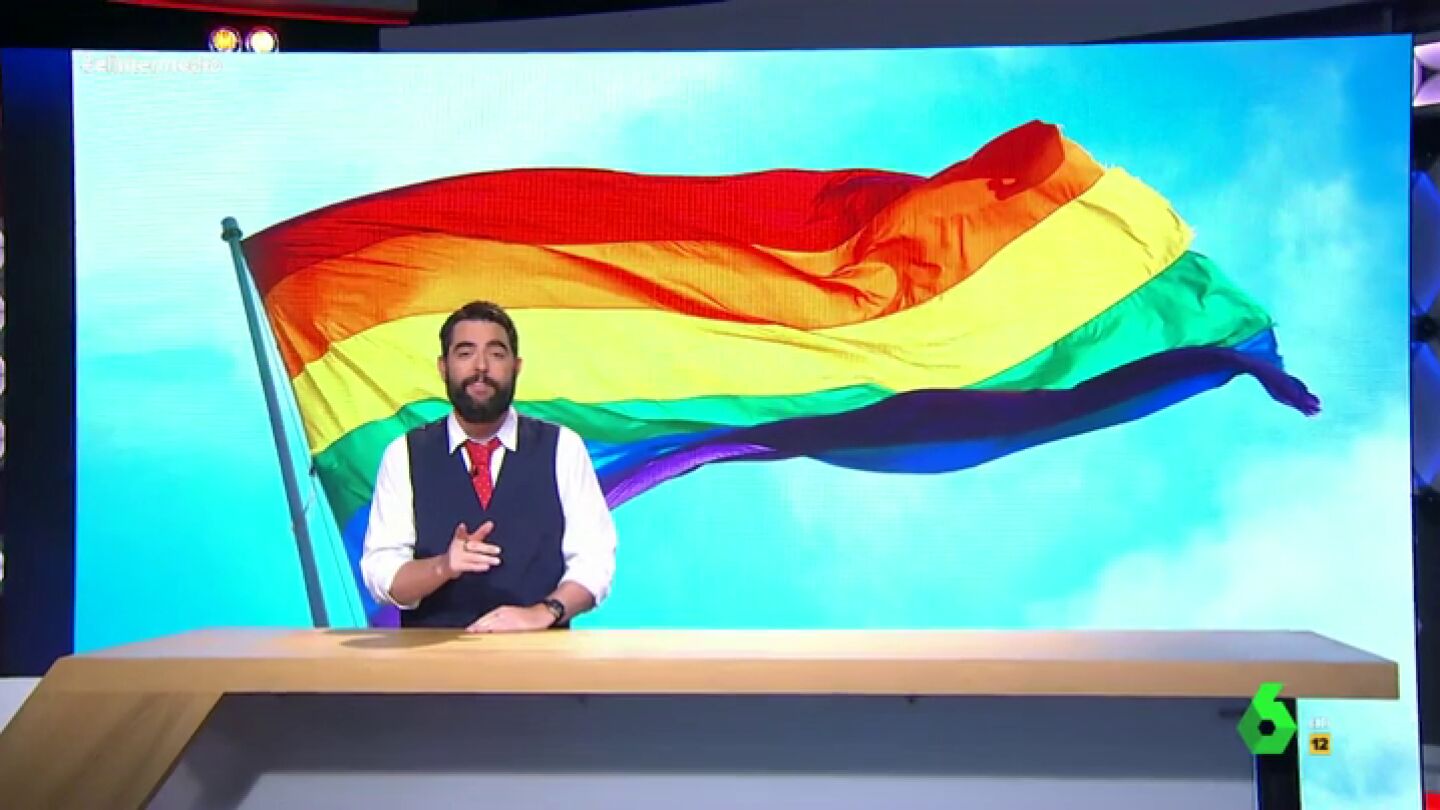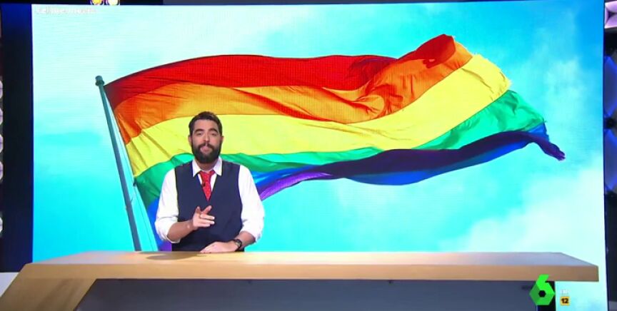 Como ejemplo recuerda el caso de Richard Cohen, autor de 'comprender y sanar la homosexualidad', que estuvo invitado a una charla de Hazte Oír en la que afirmaba que todos nacemos heterosexuales. Dani Mateo desmonta su teoría con un simple gesto.