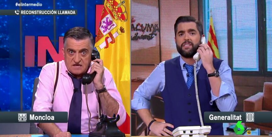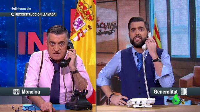 El Intermedio ha conseguido hacer una rigurosísima reconstrucción de la llamada más importante de los últimos meses. Con El Gran Wyoming en el papel de Sánchez y Dani Mateo en el de Torra, los espectadores han podido conocer qué se ha tratado en la charla.