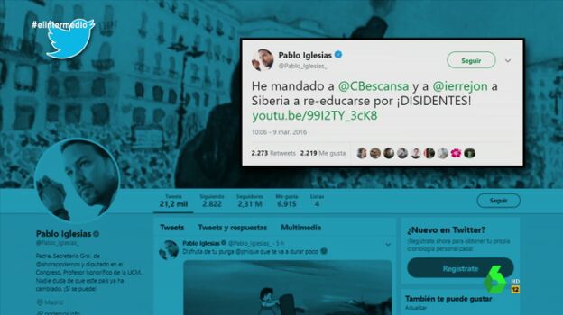 Y la estrategia fue la misma de ahora, comenzar a mandarse bromas con Errejón y Bescansa, que posteriormente acabarían dejando el partido. Por ello, lanza un mensaje a Echenique: "Cuidadito. El jefe empieza con sus bromitas y al final te acaba haciendo unfollow todo el partido".