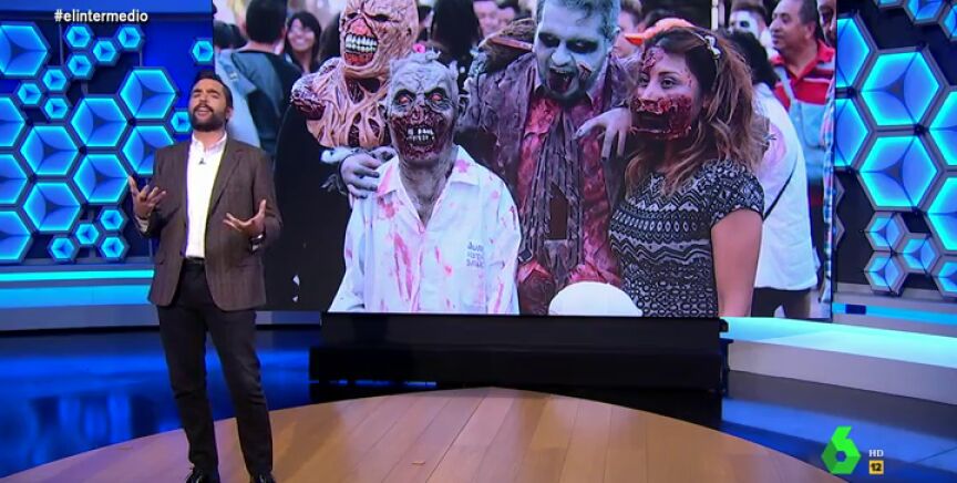 "Ourense está de enhorabuena, ya es un lugar seguro en el que no te pueden atacar un hambriento grupo de personas sin vida porque esta prohibido", afirma Dani Mateo, que destaca "la pandemia siempre se ceba con los mas débiles", en este caso, "los zombies". "Sabéis lo difícil que es llevar mascarilla cuando has perdido las orejas?", pregunta el periodista.