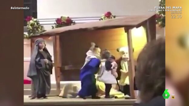 Antes de la pandemia de coronavirus ya había situaciones que podían estropear la Navidad, y Dani Mateo y El Gran Wyoming descubren algunas de ellas en El Intermedio. Por ejemplo, montar un Belén viviente en un colegio y que una niña disfrazada de algo que parece un oso panda quiera sustraer el muñeco que hace de niño Jesús del pesebre. "Eso no es un panda, es Sor María que se está llevando al niño Jesús", bromea El Gran Wyoming al ver las imágenes.