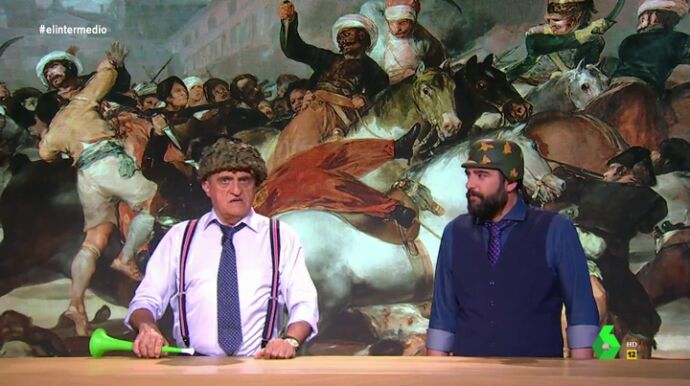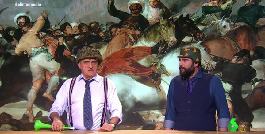 "Como me gusta el olor a nacionalismo, por fin alguien sabe lo que necesita España, una buena guerra", comenta el presentador de El Intermedio tras escuchar las declaraciones de Ortega Smith, y añade: "En 1808 los españoles le dimos su merecido a los franceses en la Guerra de la Independencia".