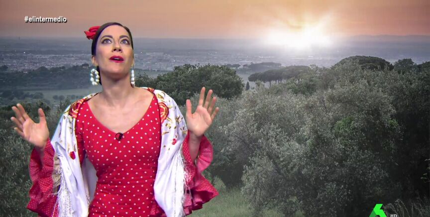 Tras sus decepcionantes resultados en Andalucía, Macarena Olona (interpretada por Cristina Gallego) se ha ido a un monte a hablar con dios. "Señor, soy yo, tu hija Macarena de 'Graná', la lideresa que los andaluces no han sabido valorar lo suficiente", destaca 'Olona', que pregunta a dios qué debe hacer: "Estoy hecha un lío, ¿me quedo en Andalucía o me voy a Madrid?, yo seguiré tus designios, sobre todo si me dices que me voy a Madrid".