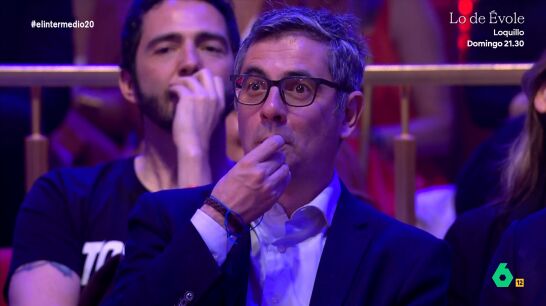 "He pillado a Rufián", expone Isma. El portavoz de ERC confiesa que ha robado "latas". La siguiente pregunta va dirigida solo a los ministros: "Que piten aquellos que esperaban que les tocase un ministerio mejor". La cámara caza a Félix Bolaños tocando el silbato. "Pues el suyo es bueno, pensaba que iba a pitar Urtasun", le dice Juárez.