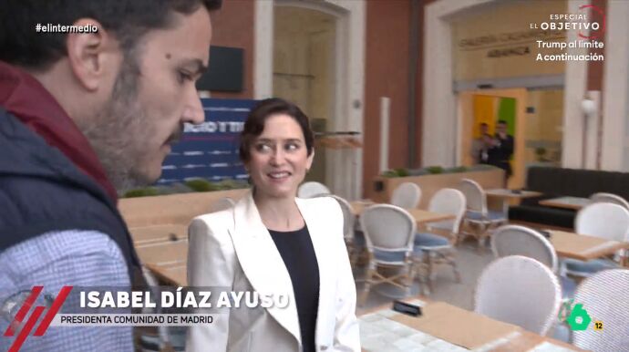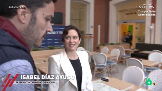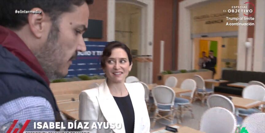 A pesar de presentarse a una miembro del gabinete de Ayuso como "el majo de El Intermedio", Isma no consigue que la presidenta madrileña se tome un café con él: "¿Es usted de café o más de fruta para desayunar?", le pregunta antes de que se marche.