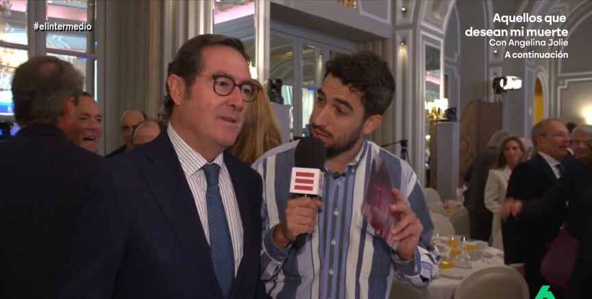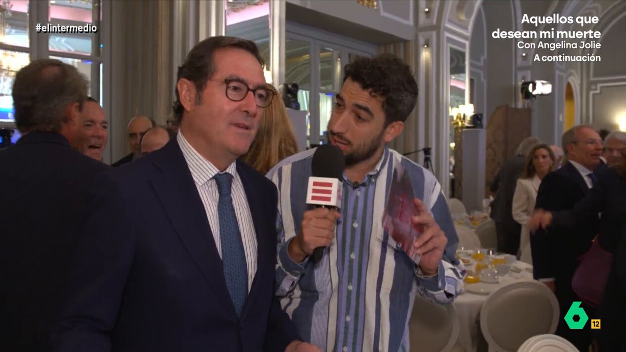 Finalmente, el reportero de El Intermedio tenía la oportunidad de entrevistar a Antonio Garamendi, al que pregunta por su jornada laboral: "¿Es de más de cuarenta horas?".