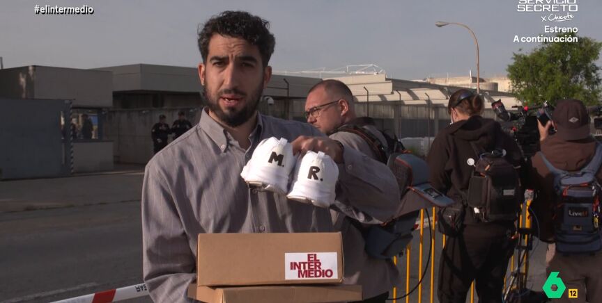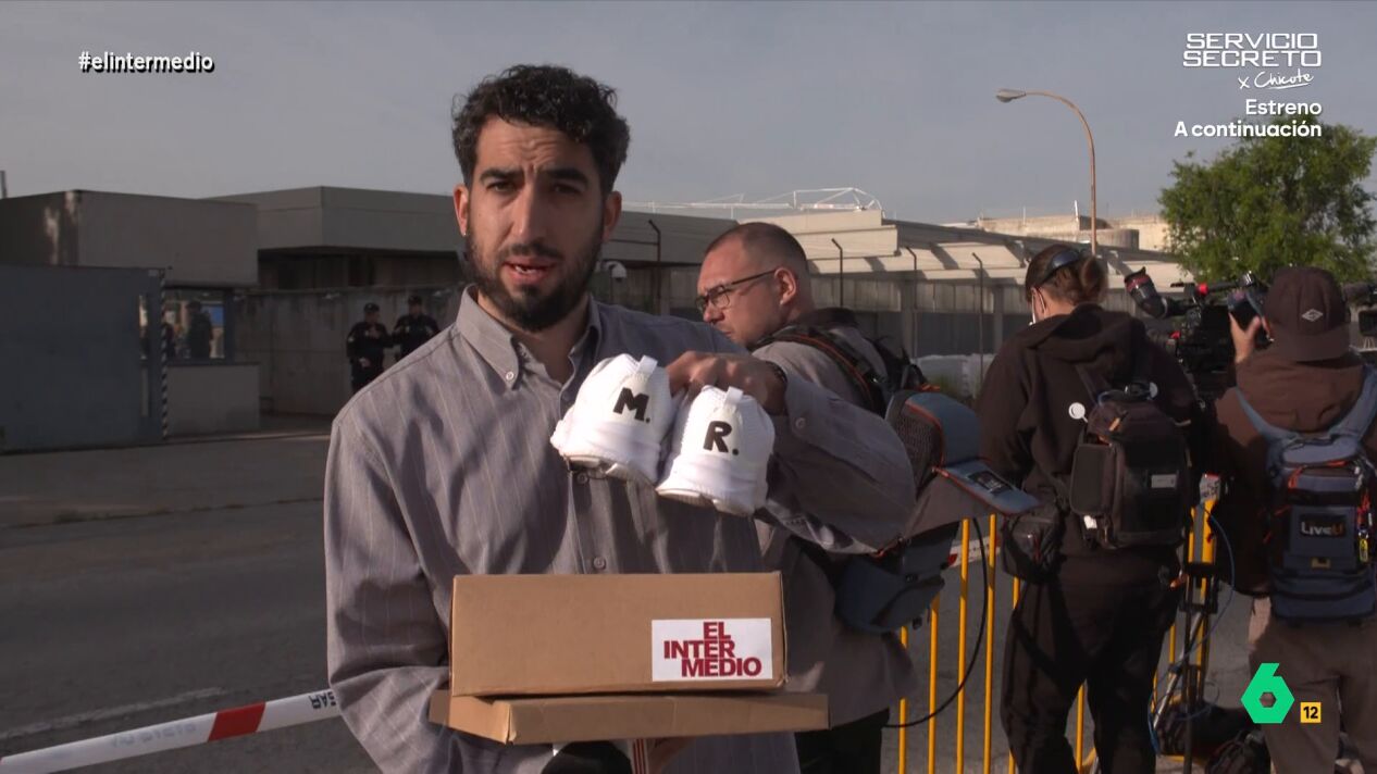 Este regalo son unas zapatillas personalizadas "para que ande rápido, como le gusta a él, y quizá, escapar de Bárcenas". "Están guapas", afirma, aunque señala que la personalización está hecha con bolígrafo.