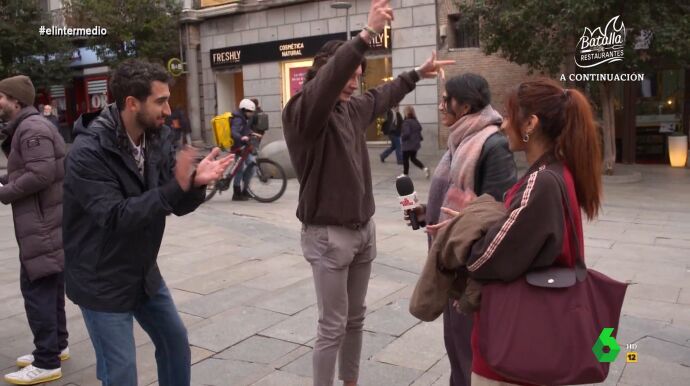 Puedes ver este surrealista momento en el vídeo principal de la noticia. "¡De locos!", espeta el reportero, que reconoce: "He pasado más vergüenza yo que tú".