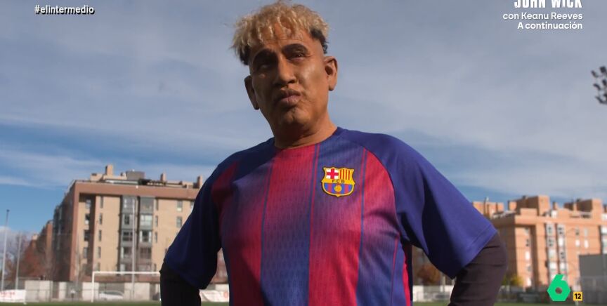 El humorista se ha transformado en el jugador del Fútbol Club Barcelona que, como ha contado, es "el jugador más joven en cobrar 40 millones de euros". "Mi sueldo también incluye un Bono Parque", desvela.