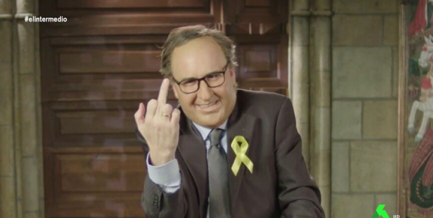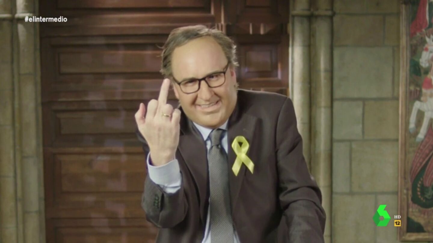Joaquín Reyes se mete en la piel de Quim Torra para lanzar un contundente mensaje a todos los catalanes: "Catalanes, catalanas, comparezco ante vosotros en un nuevo día clave en nuestro camino a la independencia. Como sabéis, la justicia española pretende inhabilitarme; es un nuevo ataque contra nuestra ciudadanía".