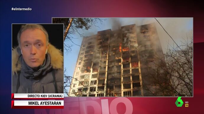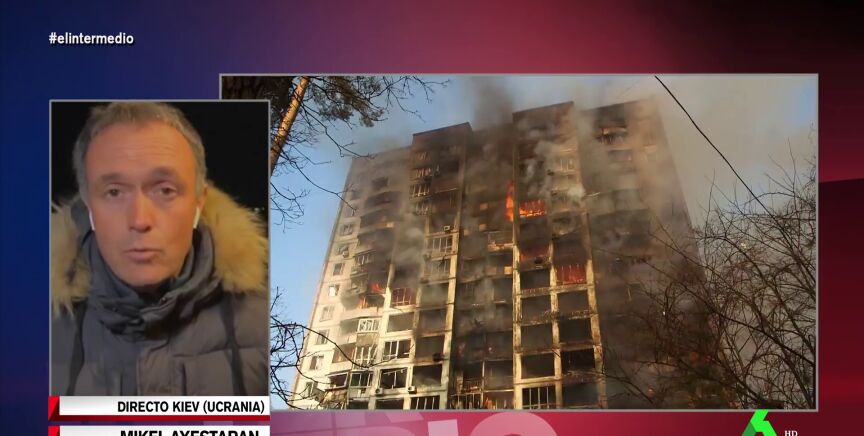 El ataque a Kiev "se espera desde hace tres semanas", y lo que ha cambiado, dice Ayestaran, es que ya se están produciendo los primeros ataques directos en barrios residenciales. "Lo que nos encontramos son las mismas escenas de gente que lo ha perdido todo y edificios que son esqueletos en llamas destrozados", ha contado.