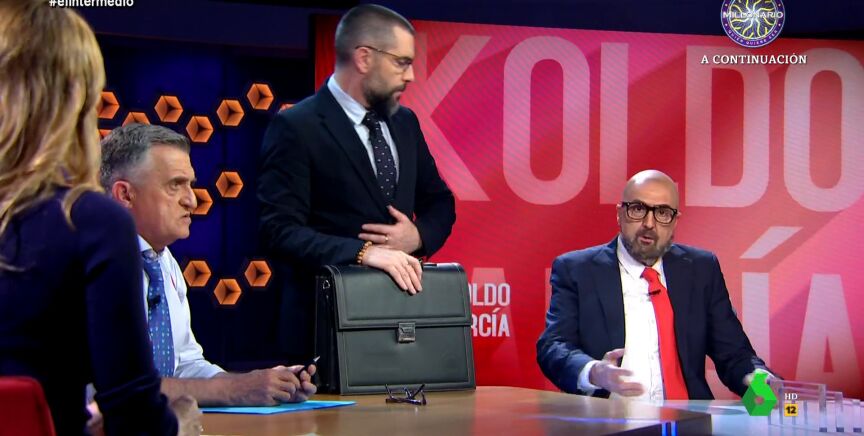 El mismísimo 'Koldo García', a través de la imitación de Raúl Pérez, irrumpía en el plató de El Intermedio para analizar su intervención en la comisión de investigación del Senado. También para presentar a "mi ángel de la guarda, mi compañero de batallas, mi ser más querido": "Mi abogado, el que tengo aquí... siempre a mi lado".