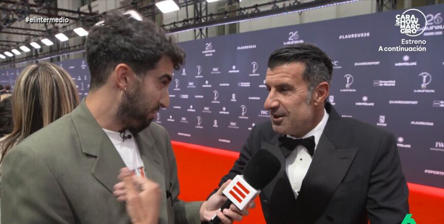 Un año después de que Luis Figo le dijera a Isma Juárez que no ve El Intermedio porque "sois muy rojos", el reportero vuelve a preguntar al exfutbolista, que en este vídeo le sorprende con su sorpresa.