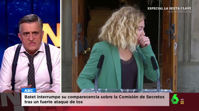 El Gran Wyoming recupera el momento en el que la presidenta del Congreso, Meritxell Batet, se atraganta, en directo, cuando defendía la constitución de la Comisión de Secretos Oficiales ante la prensa.