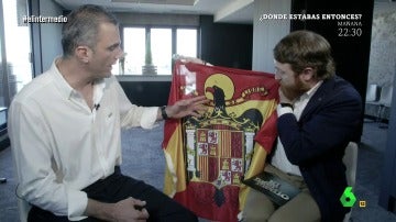 Manuel Burque entrevistó a Javier Ortega Smith, el secretario general de Vox, en El Intermedio. La entrevista tocó muchos temas, entre ellos Trump, su travesía a nado por el estrecho de Gibraltar o el 'erróneo' regalo de Burque al político de Vox. "España necesita nuevos héroes a los que admirar". destacó Ortega Smith.