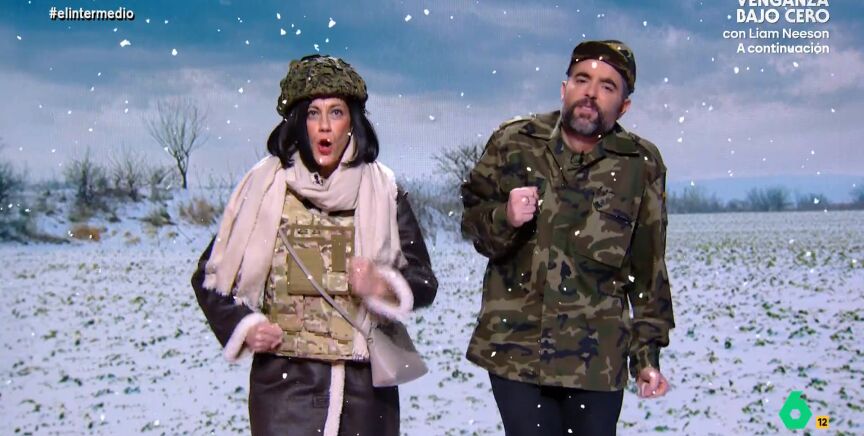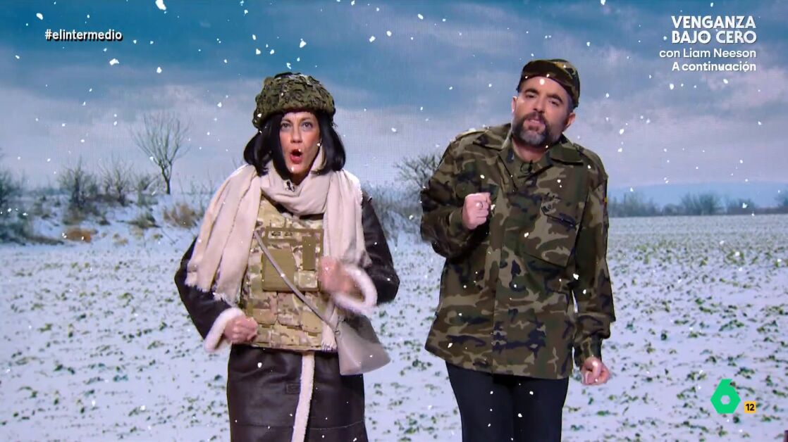 Donald Trump ha mostrado su interés por Groenlandia. Este no ha dudado en afirmar que no descarta una acción militar para poder hacerse con el control de esta isla. Como señala el Gran Wyoming, "España está dispuesta a hacer frente a todas las afrentas de Trump". Por ese motivo, Cristina Gallego se ha convertido en la ministra de Defensa, Margarita Robles, para mostrar cómo se prepararía el ejército para estas nuevas misiones.