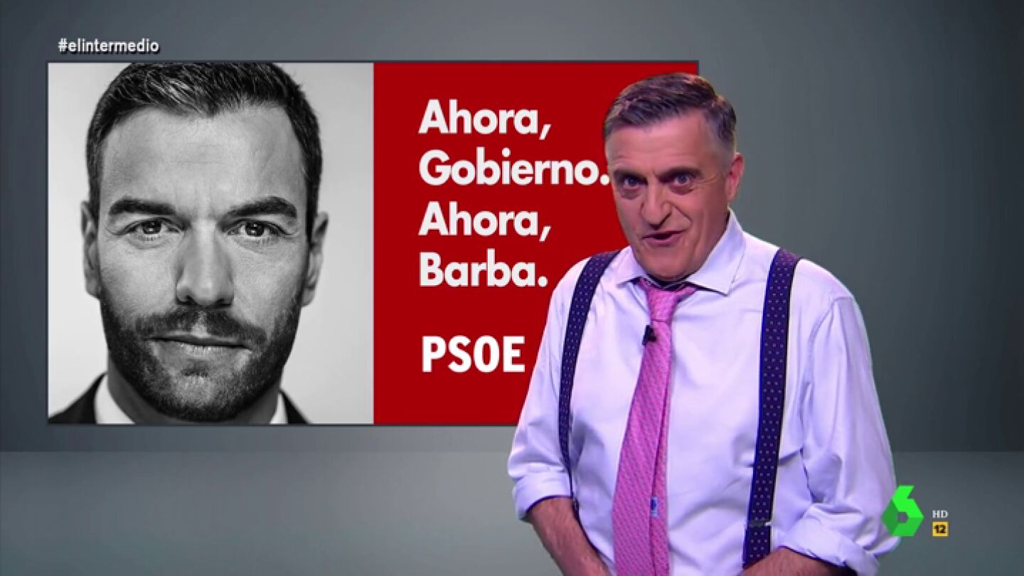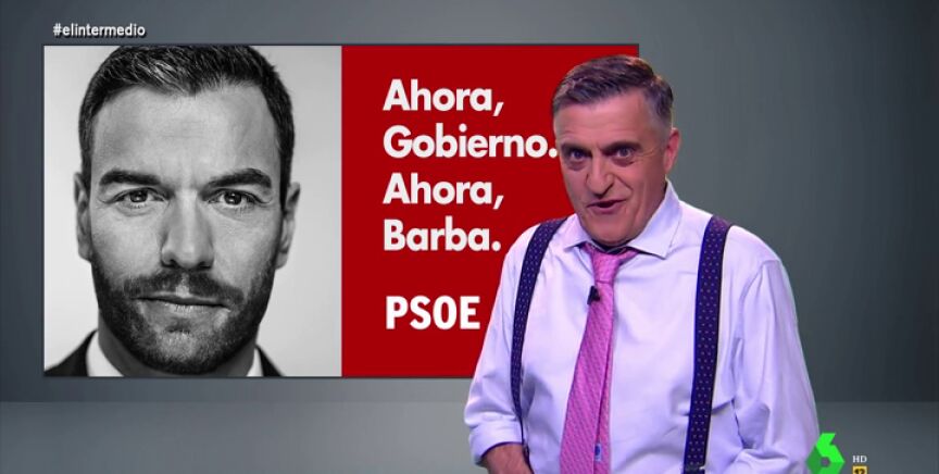 El Intermedio no piensa descansar hasta que Sánchez diga a las maquinillas "no es no" y se deje barba. "A partir de ahora presionaremos todos lo que haga falta", destaca Wyoming con la campaña "Ahora Gobierno, ahora barba": "Españoles vuestra nación os necesita, ¡tenemos que conseguir que Pedro Sánchez se deje barba!".