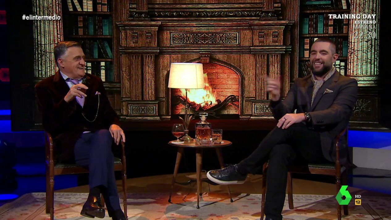 El Gran Duque de Wyomingfitz-Stuart y Daniel Ruiz Mateos del Condado del Alto Hospitalet, Los Aristorrancios, comentan en una charla animada al calor de la chimenea las últimas noticias relacionadas con el mundo de la nobleza española.