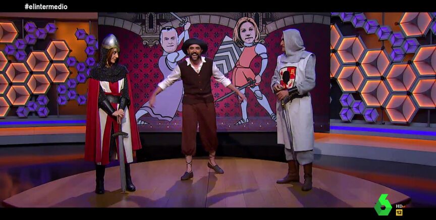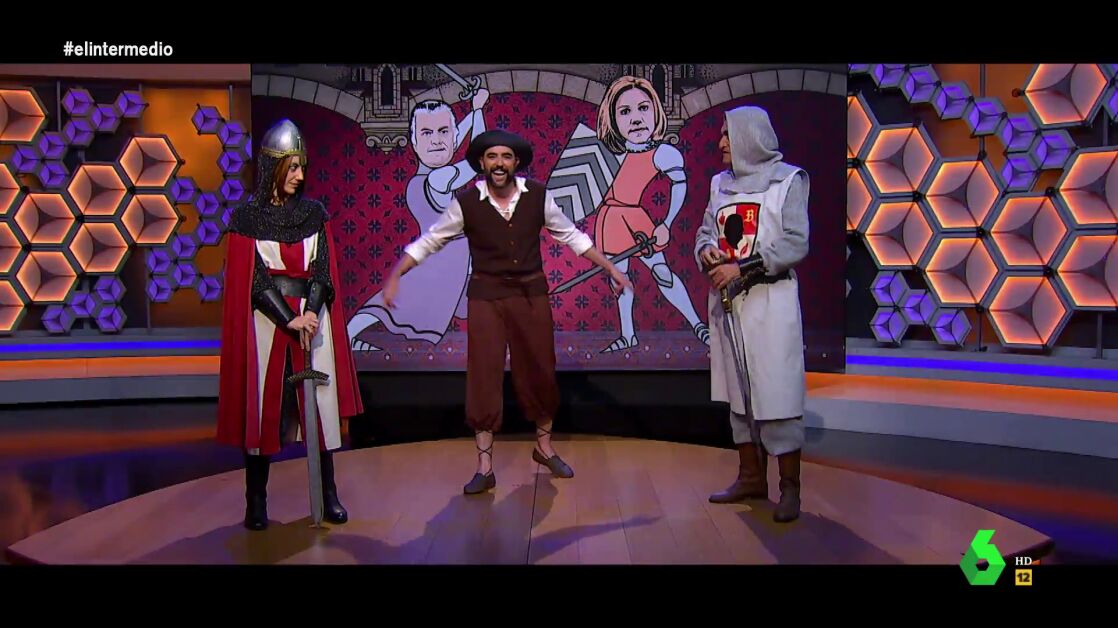 El Gran Wyoming y Dani Mateo vuelven a ponerse en la piel de Luis Bárcenas y su fiel escudero en 'El Cantar de Mío Luis', con el valiente extesorero "enfrentándose en un duelo" a María Dolores de Cospedal -interpretada por Cristina Gallego-, "la 'khaleesi' de la Mancha", que ha declarado ante la Audiencia Nacional.