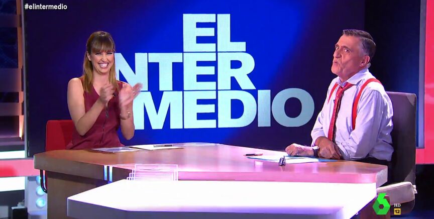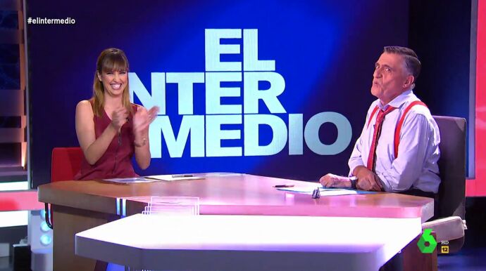 Después de su tradicional monólogo nada más arrancar El Intermedio sobre lo más destacado de la actualidad, El Gran Wyoming se dirige a su mesa, donde se reencuentra con Sandra Sabatés tras el fin de semana.