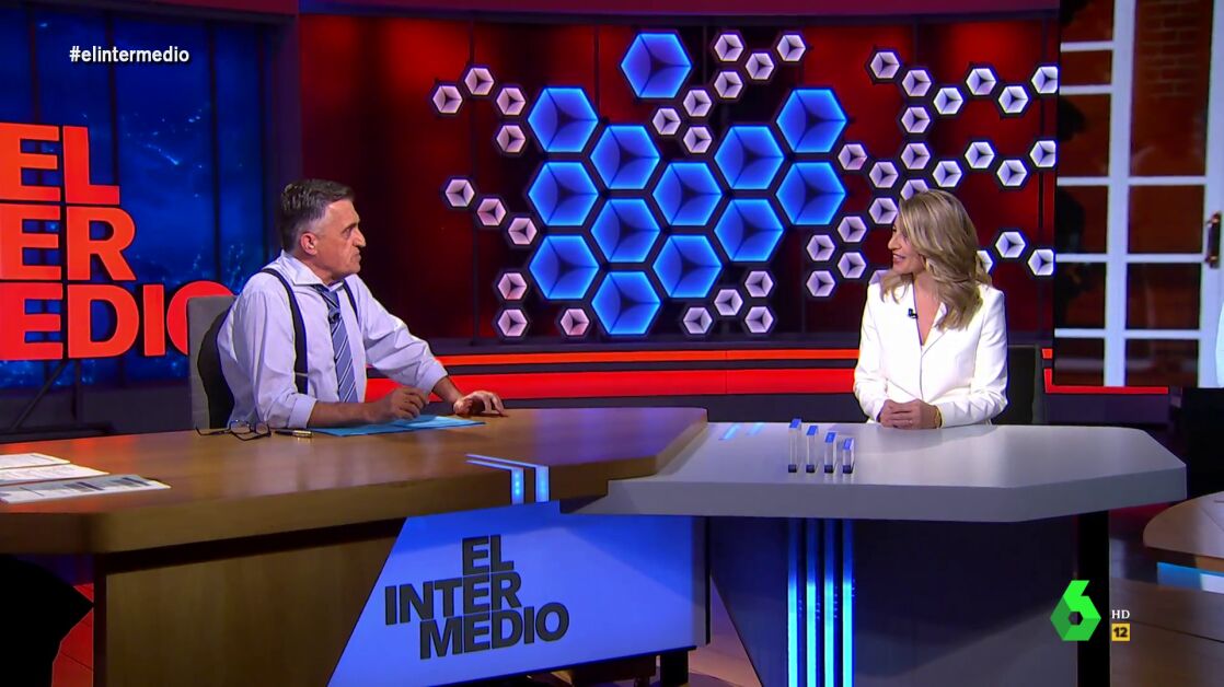 Yolanda Díaz visita el plató de El Intermedio para analizar la situación del trabajo en España en plena pandemia del coronavirus. Y, como no podía ser de otra forma, la vicepresidenta tercera no se libra de la habitual broma de El Gran Wyoming a sus invitados.