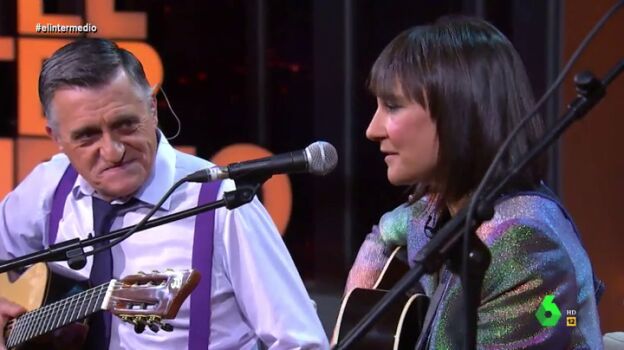 El Intermedio se une a la celebración del 8 de marzo con una actuación muy especial. Amaral actúa en directo en plató y Wyoming, guitarra en mano, se une al grupo. "Estoy como una avispa en la cáscara de un melón", reconoce el presentador de El Intermedio antes de la actuación.