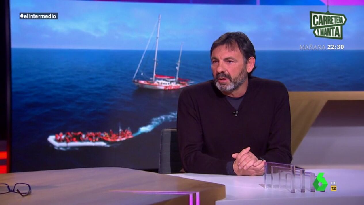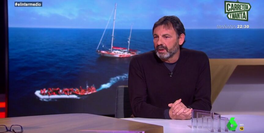 El Gran Wyoming y Sandra Sabatésentrevistan en El Inermedio a Óscar Camps, director de Proactiva Open Arms. El barco que utiliza la ONG para rescatar a personas del Mediterráneo ha sido retenido en Barcelona por decisión del Gobierno.