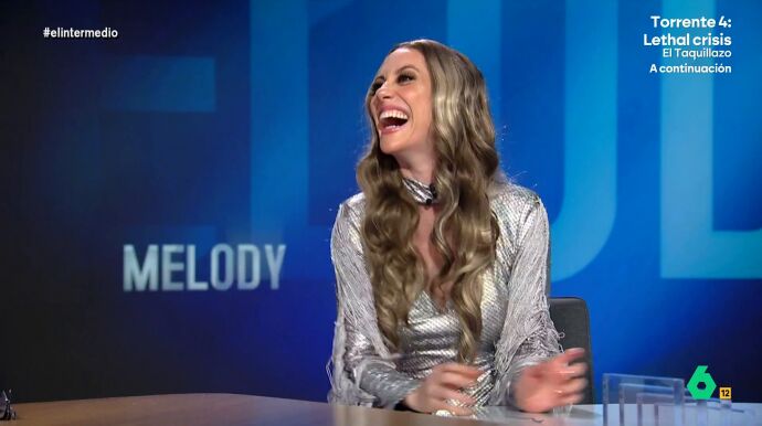 La 'artista' acudía a El Intermedio tras su paso por el Festival de Eurovisión. Wyoming preguntaba a 'Melody' si consideraba que su posición había estado influenciada por la posición del Gobierno con respecto al genocidio en Gaza.