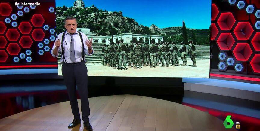 La visita de un batallón del Ejército de Tierra al Valle de los Caídos para recibir una bendición sigue levantando todo tipo de comentarios. Para El Gran Wyoming, se trata de una cuestión que le genera "muchas preguntas".