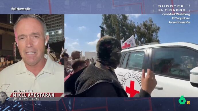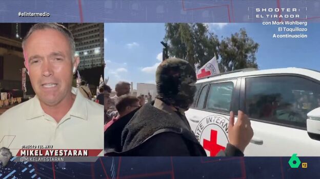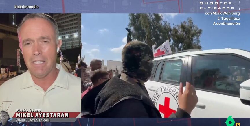 Mikel Ayestarán conecta con el plató de El Intermedio desde Israel para analizar el inicio del plan de paz de Donald Trump para Gaza: "Esta primera parece que ha empezado a funcionar con este intercambio de rehenes vivos por presos palestinos". Sin embargo, el corresponsal de guerra explica que "hay otra pieza que es fundamental que es la entrega de los cuerpos".