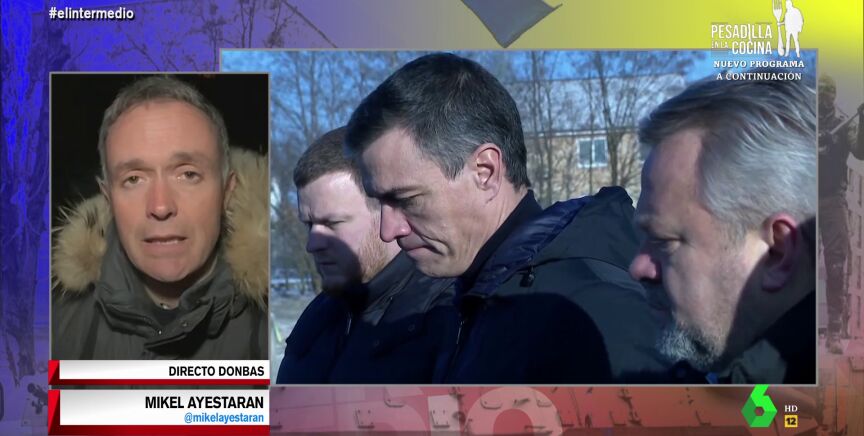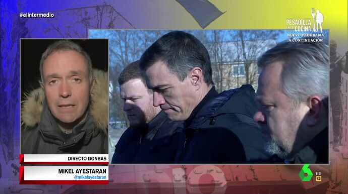 El Intermedio conecta un día más con Mikel Ayestaran, que desde el Donbas analiza cómo está la guerra en Ucrania cuando se cumple un año, repasa la visita de Pedro Sánchez a Zelenski y valora las recientes amenazas nucleares de Putin.