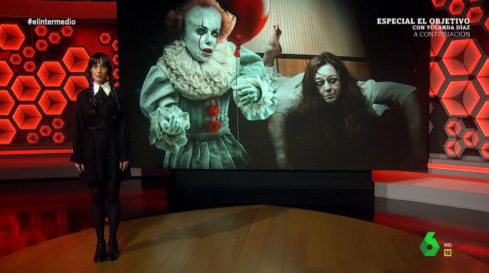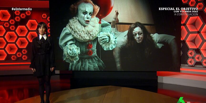 'Miércoles' Gallego vuelve a El Intermedio para 'celebrar' los "tiempos oscuros" que han llegado a la política regional: "Primero fue Ortega Smith, grande, terrible y con una inteligencia similar al Monstruo de Frankenstein, después García-Gallardo, el 'Chucky' de Vox", apunta la colaboradora.