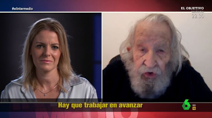 El momento actual que vivimos en todo el mundo genera muchas dudas y, para tratar de entender lo que pasa, Andrea Ropero entrevista en El Intermedio al filósofo y activista Noam Chomsky. A sus 93 años ha vivido la Segunda Guerra Mundial, la Guerra Fría y otros conflictos bélicos recientes protagonizados por su país, EEUU, como Irak o Afganistán.